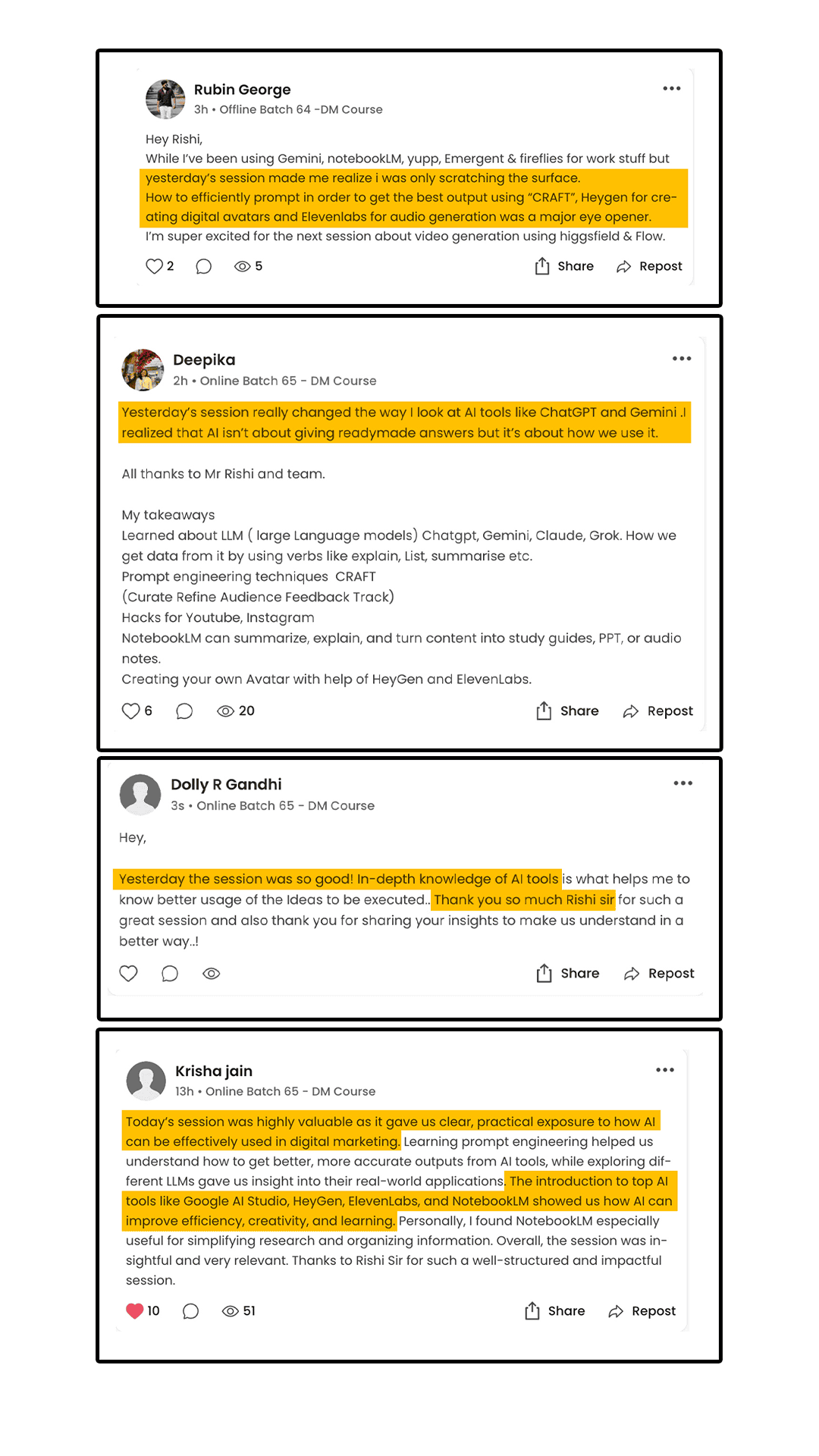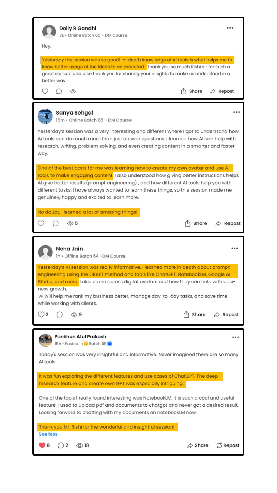 “I’ve taken dozens of courses, but nothing comes close to how actionable this one is.Every day unlocked a new system. This is the best Ai course Online