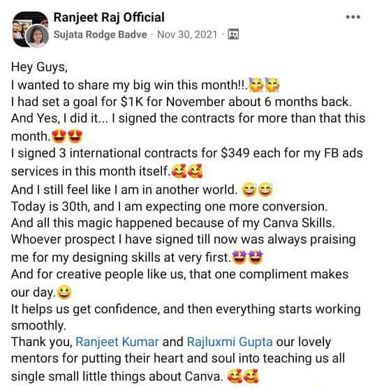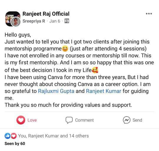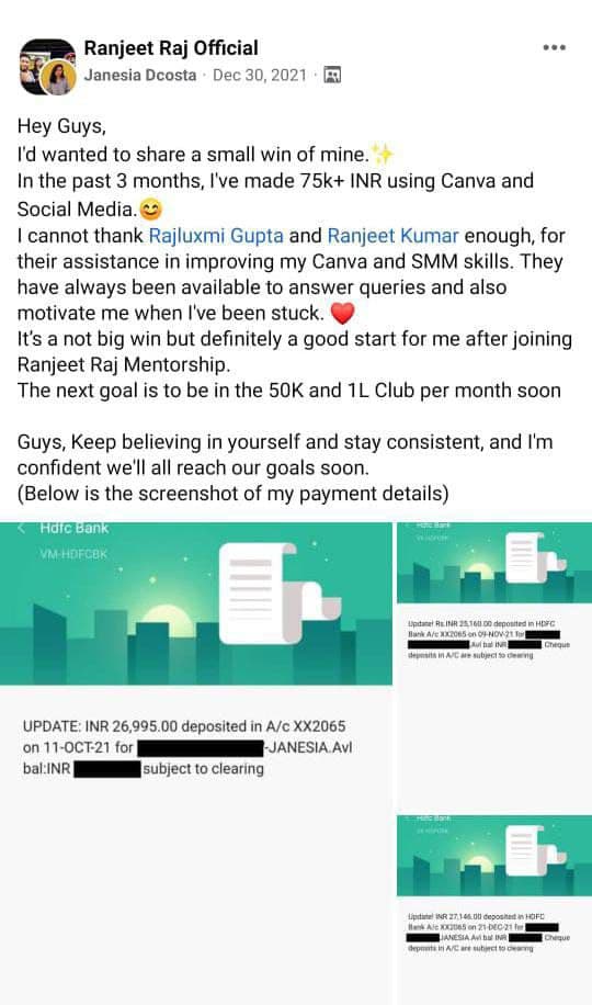 9-5 Corporate Employees turned full time Digital Entrepreneur and Social Media Strategists. They are working with High Ticket International clients, experimented with multiples niches and strategies that has helped them to make more money and freelance successfully in short span of time. Now, they are helping aspiring freelancers to learn and earn with Canva Designing skills.