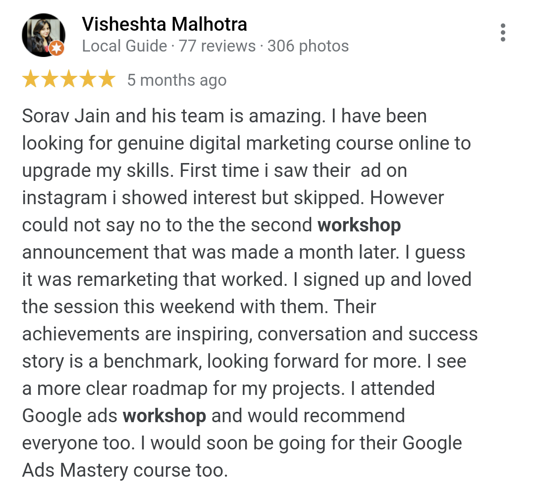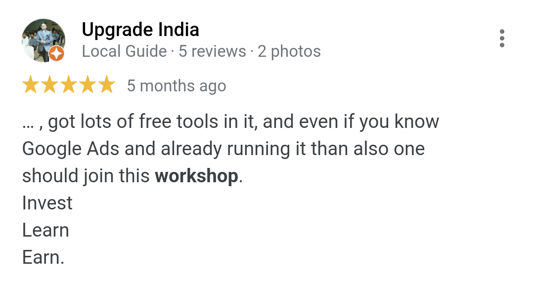 This workshop is for all those people who wants to excel at google ads, and by learning from the industry experts themselves, you increase your chances of getting better at it faster than any other individual.