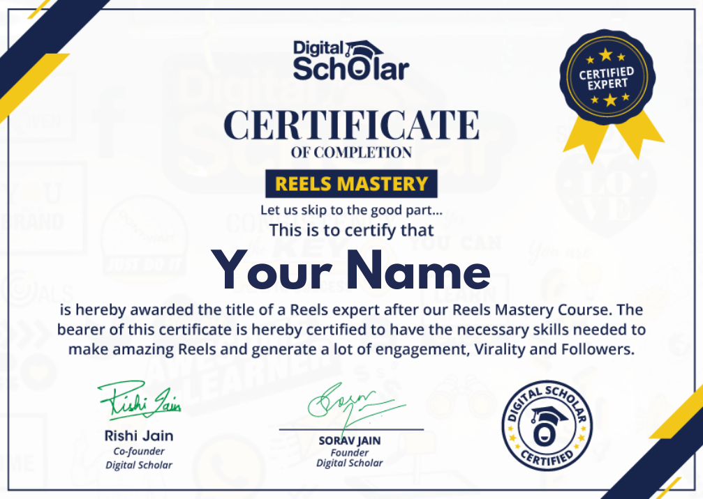 Sorav Jain is the Founder of Echovme and Digital Scholar, India's best digital marketing agency and institute respectively. Sorav will train you with NEW strategies and gameplan to understand the R.A.C.E.U.P framework to create viral Reels that can change your life forever. He'll lay the fundamentals right from basics to advanced in 50+ high definition video tutorials for you in developing the content for Reels and editing and polishing it in the entire modules in pre-done videos format that will make you an awesome creator.